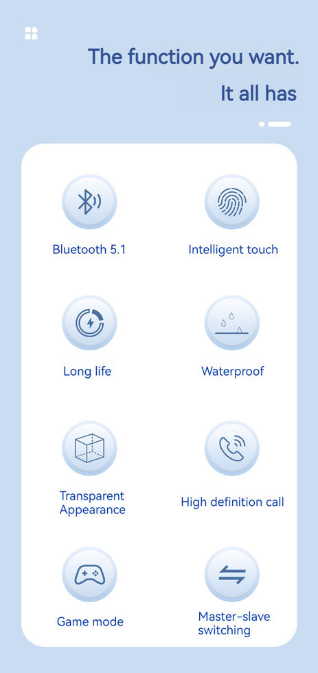 Original T2 Wireless Bluetooth Earphone, Transparent HIFI Headphones,LED Power D